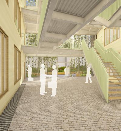 Bei der Gestaltung des Zillecampus wurde größten Wert auf die Gesundheit und das Wohlbefinden der Nutzenden gelegt. Die Grünanlage bietet ruhige Plätze zur Entspannung und trägt bei zur Abkühlung des Stadtraumes sowie zur Biodiversität – Messung über Zertifikat Greenpass®. Die Innenflächen werden in den Neubauteilen geprägt durch die hochwertigen sichtbaren Holzbauteile, welche eine inspirierende Atmosphäre schaffen.